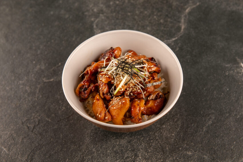 Grilled chicken blocks is seasoned with salt and oil, then glazed with savory-sweet yakitori sauce as it caramelizes over open heat. Paired with fragrant rice and tender leek, the flavors come together in perfect harmony.
